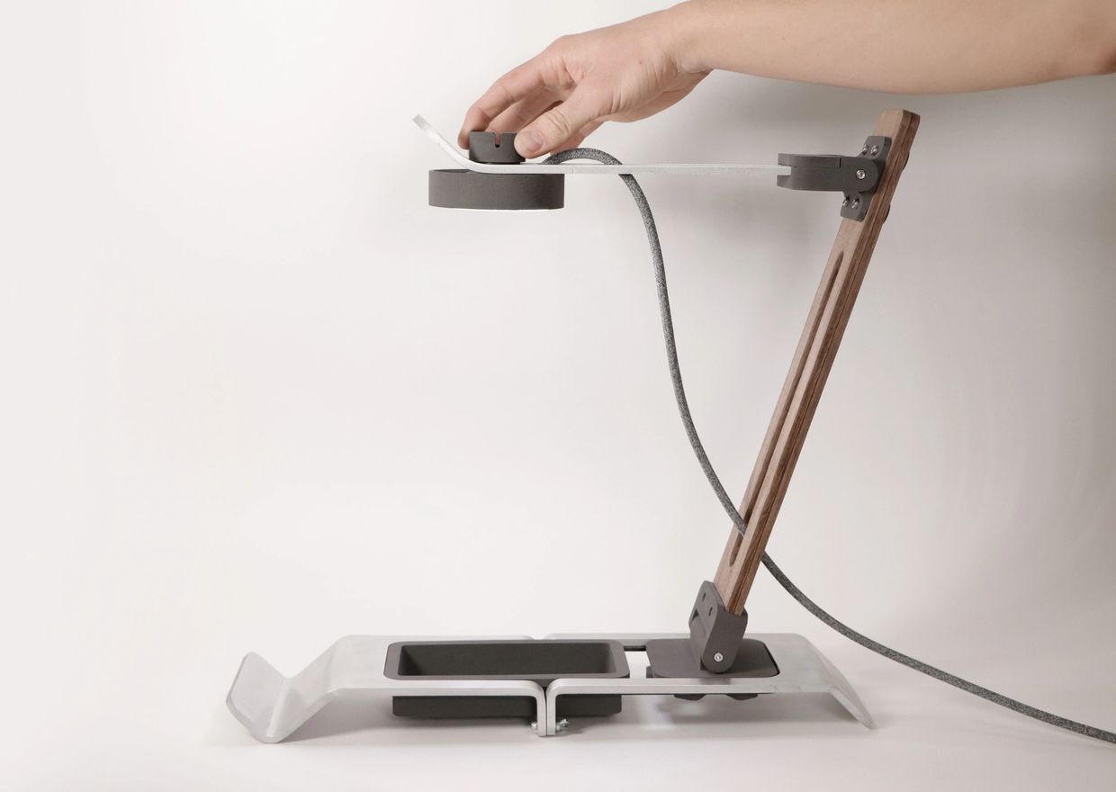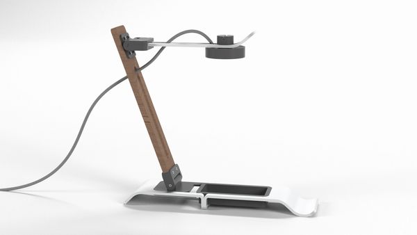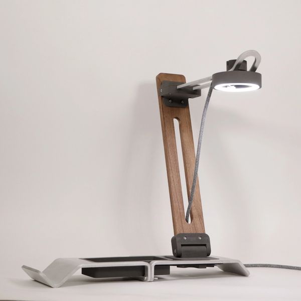 Created from aluminum, walnut wood, and nylon plastic, the Oron is a modular lamp with a pivoting arm, sliding top, and built-in storage. It assembles easily with a hex wrench, using screws for a clean, functional build that suits any workspace. 2025