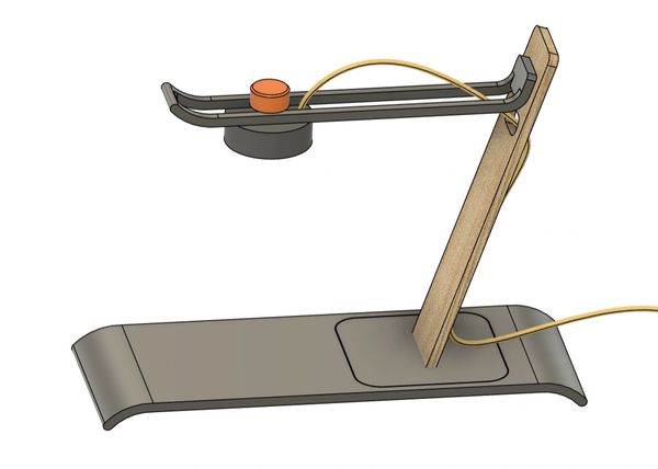I used laser cutting to fabricate the wood components that support the top assembly. I chose walnut for its strong visual contrast with the metal and plastic. To ensure strength and proper thickness, each part was made from two laser-cut layers secured with screws, no glue required.