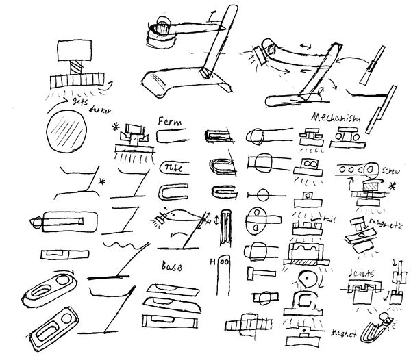 To start things off, I filled my sketchbook with ideas fast, exploring everything from base shapes to mechanisms and user interactions. To keep track of concepts I wanted to develop further, I marked them with stars for quick reference.