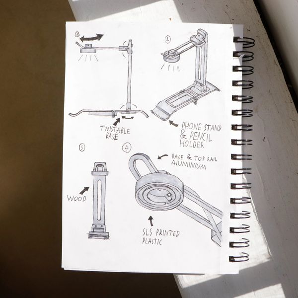 To showcase my progress, I created one final sketch that highlights key features and design aspects of the lamp.